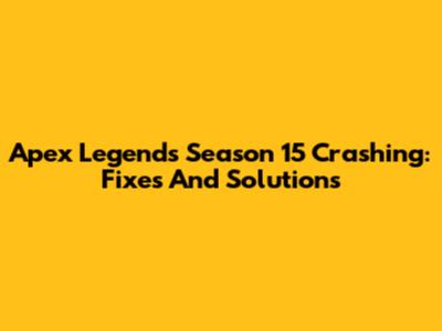 Apex Legends Season 15 Crashing: Fixes And Solutions