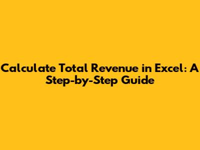 Calculate Total Revenue In Excel: A Step-by-Step Guide