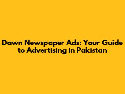 Dawn Newspaper Ads: Your Guide To Advertising In Pakistan