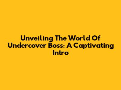 Unveiling The World Of Undercover Boss: A Captivating Intro