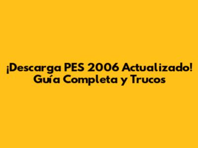 ¡Descarga PES 2006 Actualizado! Guía Completa Y Trucos