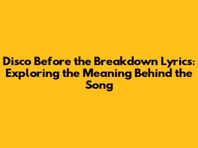 Hey music lovers! Ever found yourself humming a tune and wondering, “What’s the story behind these lyrics?” Today, we're diving deep into "Disco Before the Breakdown," dissecting the lyrics and unraveling the possible meanings. This song has captured the hearts of many, not just for its catchy melody but also for its thought-provoking words. So, let’s get started and explore what makes this song so special.