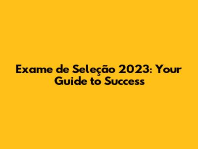 Hey guys! Are you gearing up for the Exame de Seleção 2023? Feeling a bit overwhelmed? Don't sweat it! This guide is designed to help you navigate the entire process, understand what's expected, and give you the best shot at acing it. Whether you're just starting your preparation or looking for some last-minute tips, you've come to the right place. We'll break down everything from understanding the exam format to effective study strategies and even some crucial test-day advice. Let's dive in and get you ready to conquer the Exame de Seleção 2023!