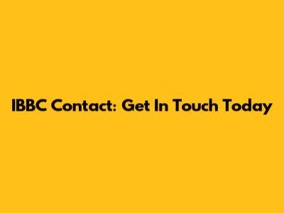 IBBC Contact: Get In Touch Today