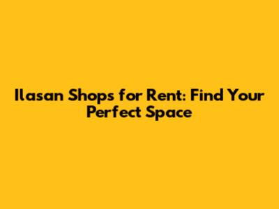Ilasan Shops For Rent: Find Your Perfect Space
