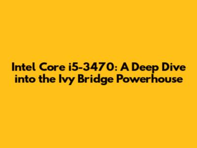 Intel Core I5-3470: A Deep Dive Into The Ivy Bridge Powerhouse
