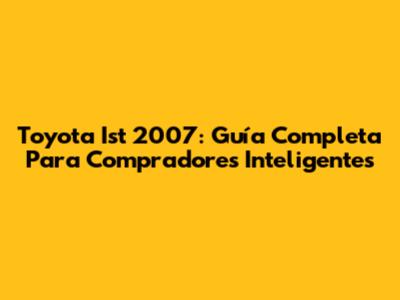Toyota Ist 2007: Guía Completa Para Compradores Inteligentes