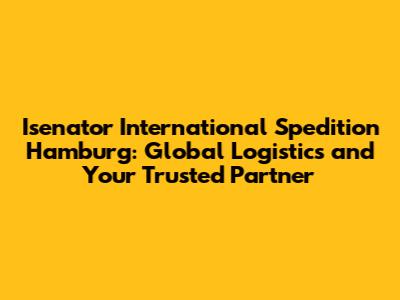 Unveiling Isenator International Spedition GmbH Hamburg: Your Gateway to Global Trade