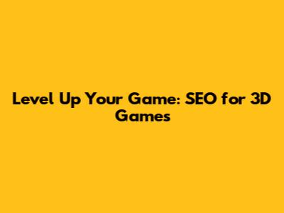 Level Up Your Game: SEO For 3D Games