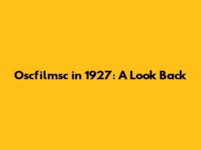 Oscfilmsc In 1927: A Look Back