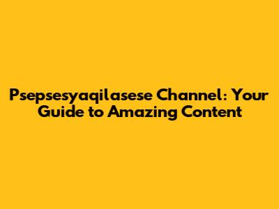 Why the Psepsesyaqilasese Channel is a Must-Watch