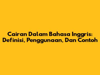 Cairan Dalam Bahasa Inggris: Definisi, Penggunaan, Dan Contoh