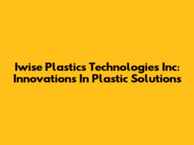Iwise Plastics Technologies Inc: Innovations In Plastic Solutions