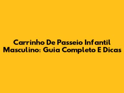 Carrinho De Passeio Infantil Masculino: Guia Completo E Dicas