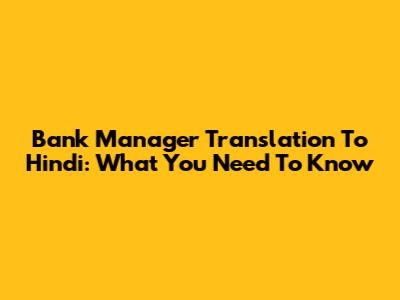 Bank Manager Translation To Hindi: What You Need To Know