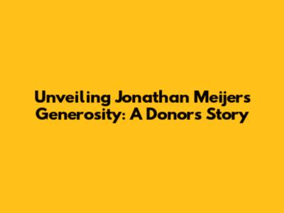 Unveiling Jonathan Meijer's Generosity: A Donor's Story