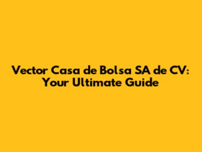 Hey there, finance enthusiasts! Ever heard of Vector Casa de Bolsa SA de CV? If you're diving into the exciting world of investing in Mexico, then this name is one you'll want to get familiar with. In this in-depth guide, we're going to break down everything you need to know about Vector Casa de Bolsa, from what they do to how they can help you build your investment portfolio. Let's get started, shall we?