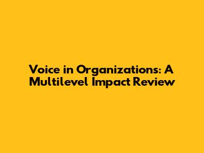 Voice In Organizations: A Multilevel Impact Review