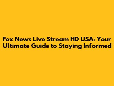Hey there, news junkies! Are you looking for a way to stay up-to-date with the latest headlines, breaking stories, and insightful commentary from Fox News? Well, you're in luck! This guide is your one-stop resource for everything related to the Fox News live stream in HD in the USA. We'll dive into how you can access the stream, explore the different platforms available, and discuss the benefits of watching Fox News live. Get ready to have all your burning questions answered and discover the best ways to enjoy your favorite news channel.